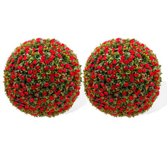 Garvee 15 in Flower Topiary Ball Decorative Balls 2PCS, Artificial Topiary Balls for Outdoor Patio Garden Indoor Wedding Decoration, Red