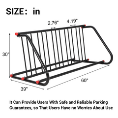 • THREE OPTIONS: 5-Bike Single-Side (L:60 in x W:28 in x H:30 in ), 10-Bike Single-Side (L:122 in x W:28 in x H:30 in ), 10-Bike Double-Sided (L:60 in x W:39 in x H:30 in ).This ground bike rack is suitable for outside and inside occasions.
