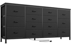 Garvee 14 Drawer Dresser 63 Inch Black Fabric TV Stand with Power Outlet for 65-75 Inch TV Bedroom Living Room Closet Entryway