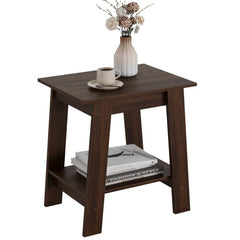 Garvee End Table Side Table with 2-Tier Storage Shelf for Small Space Rustic Brown 15.51"D x 11.8"W x 18.98"H