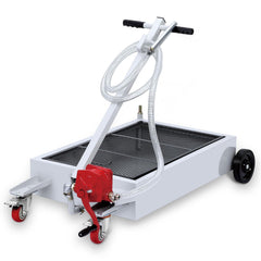 This low-profile oil drain pan is designed for easy positioning under cars and vans, offering smooth fluid collection and controlled transfer through a hand-pump and hose system. Ideal for both home garages and professional workshops.