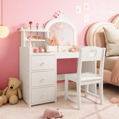 Safe & Sturdy Construction: Crafted from premium MDF materials, this wooden vanity table and chair set is designed for durability and child safety. Smooth surfaces and rounded edges help protect little ones from accidental bumps—perfect for everyday use