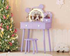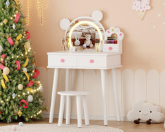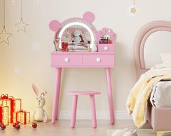 Garvee Kids Vanity Set with Lights Bear-Shaped Makeup Vanity Desk and Stool for Bedroom Pink
