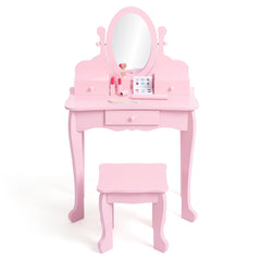 Garvee Kids Vanity Set with Mirror and Drawer - Pretend Play Dress-Up Fun with Wooden Makeup Playset for Girls 4-9 Yrs, Pink