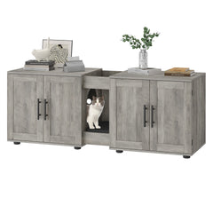 Transform your living space with the GARVEE Double-Room Cat Litter Cabinet. This innovative piece combines stylish design with practical features, ensuring both you and your feline friends are satisfied.
