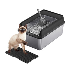 Upgraded Stainless Steel Cat Litter Box: The cat litter box is designed with solid stainless steel and reinforced PP enclosure to ensure leak-proof and excellent durability. This metal cat litter box is scratch-resistant and rust-proof, making it a reliable choice for your long-term use and to meet your cat's needs.